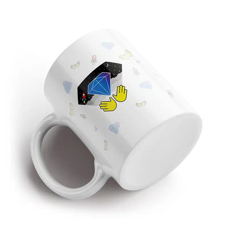 Geef deze unieke diamond hands mok aan handelaren met ‘diamanten handen’ oftewel, handelaren die niet toegeven en pas hun aandelen verkopen als ze hun doel hebben bereikt. Dit unieke ontwerp heeft een diamant als hoofdontwerp en een raket die naar de maan vliegt.