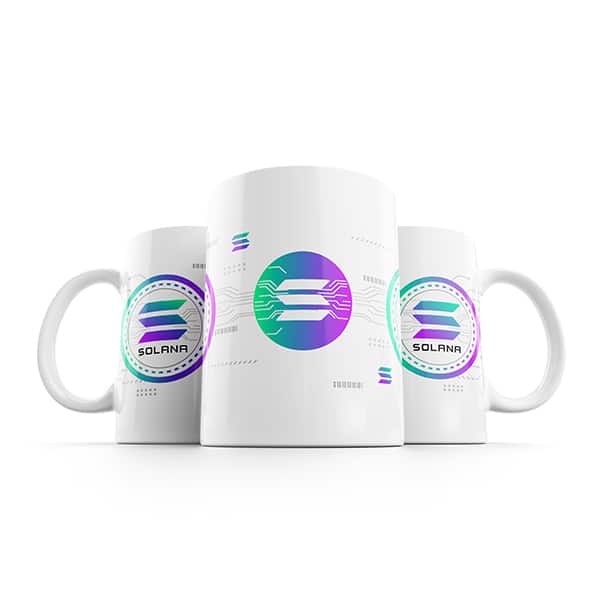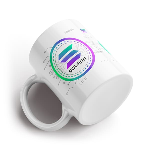 Leuke Solana SOL mok om weg te geven als cadeau aan iemand die Solana bezit of natuurlijk aan jezelf. Het ontwerp is aan beide kanten van de mok bedrukt. Dus het maakt niet uit hoe je de mok vast hebt.