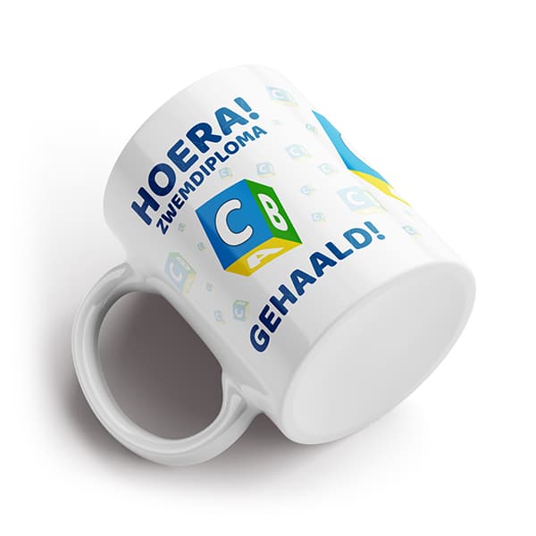 Geef deze prachtige zwemdiploma C mok cadeau aan iemand die gaat afzwemmen voor zwemdiploma C. Deze mok heeft als tekst Hoera Zwemdiploma C gehaald die verwerkt is blauwe letters en een blauwe blok waarin de letter C in is verwerkt. Het ontwerp past natuurlijk helemaal bij het thema afzwemmen voor zwemdiploma C.