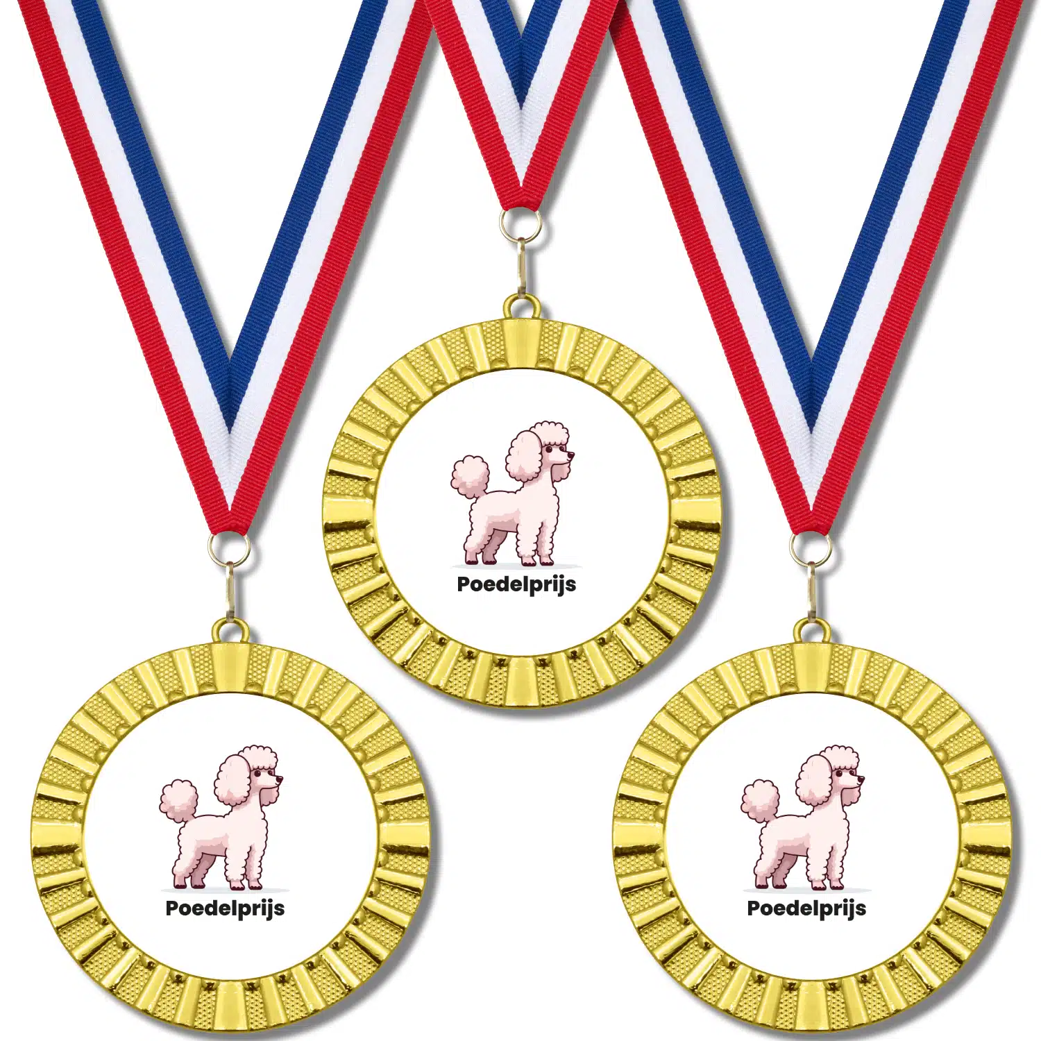 De poedelprijs medaille voegt een speelse en luchtige dimensie toe aan elk evenement. Geef je deelnemers iets om over te lachen en herinner hen aan de plezierige sfeer van de dag. Maak je evenement onvergetelijk en verras iedereen met deze poedelprijs medaille!